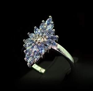 Серебряное кольцо 925 пробы 2,06 гр. с Танзанитами класса АААА и топазами из США 1,23 карат